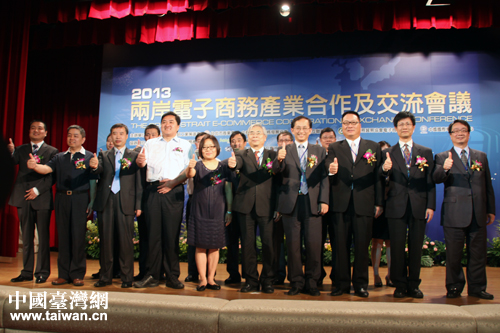 2013年兩岸電子商務(wù)產(chǎn)業(yè)交流及合作會(huì)議12日在臺北市舉行大會(huì),圖為兩岸與會(huì)嘉賓為大會(huì)揭幕合影。(中國臺灣網(wǎng) 楊麗 攝)