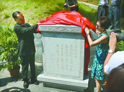 中國國民黨榮譽(yù)主席連戰(zhàn)和夫人在祭祖儀式上揭碑。記者李葳 攝
