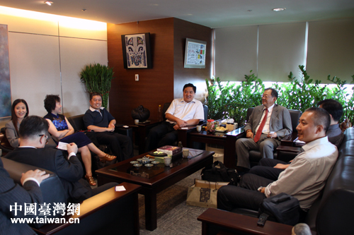 9月中旬,大陸電子商務(wù)業(yè)界的代表在臺參訪,與臺灣同行交流互動,共同探討兩岸電子商務(wù)的發(fā)展。圖為兩岸業(yè)界人士在臺灣土地開發(fā)公司座談。(中國臺灣網(wǎng) 楊麗 攝)