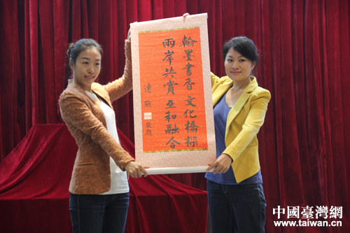 中國(guó)國(guó)民黨榮譽(yù)主席連戰(zhàn)先生專門為本次座談會(huì)題詞:翰墨書香 文化橋梁 兩岸共賞 互和融合。(中國(guó)臺(tái)灣網(wǎng) 王怡然 攝)