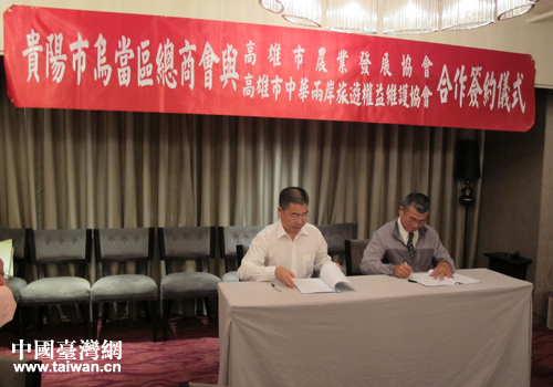 推介會(huì)上,烏當(dāng)區(qū)總商會(huì)與高雄市農(nóng)業(yè)發(fā)展協(xié)會(huì)、高雄市中華兩岸旅游權(quán)益維護(hù)協(xié)會(huì)分別簽了《烏當(dāng)區(qū)羊午水庫(kù)旅游》和《烏當(dāng)區(qū)美麗鄉(xiāng)村幸福家園旅游示范帶》等項(xiàng)目合作意向書,推進(jìn)兩地經(jīng)貿(mào)合作。(中國(guó)臺(tái)灣網(wǎng)、貴陽(yáng)市烏當(dāng)區(qū)統(tǒng)戰(zhàn)部聯(lián)合報(bào)道)