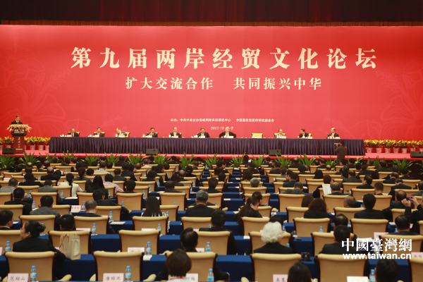 10月26日上午,以“擴(kuò)大交流合作,共同振興中華”為主題的第九屆兩岸經(jīng)貿(mào)文化論壇在廣西南寧開幕。(中國臺灣網(wǎng) 于斯文 攝)