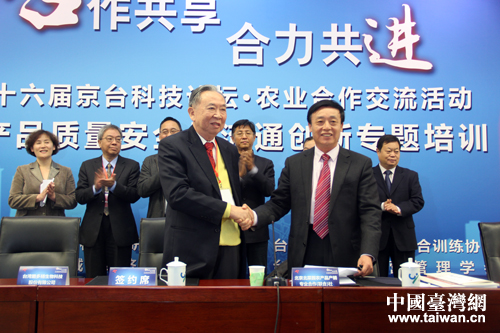 培訓(xùn)會(huì)上還特別舉行了《京臺(tái)生物有機(jī)資材應(yīng)用試驗(yàn)推廣合作項(xiàng)目》簽約儀式,北京北菜園農(nóng)產(chǎn)品產(chǎn)銷專業(yè)合作社與臺(tái)灣酪多精生物科技公司達(dá)成合作意向。(中國臺(tái)灣網(wǎng) 楊麗 攝)