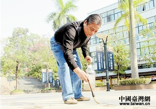 中國(guó)臺(tái)灣網(wǎng)12月16日南寧消息 聽臺(tái)聯(lián)的同志說,家住的南寧榮和山水美地的臺(tái)胞羅承鵬是位很有造詣的水墨書法愛家,常在小區(qū)空地、廣場(chǎng)清晨、傍晚用“地上書法”,引導(dǎo)青少年來傳承中華文化,受到各界的好評(píng)。