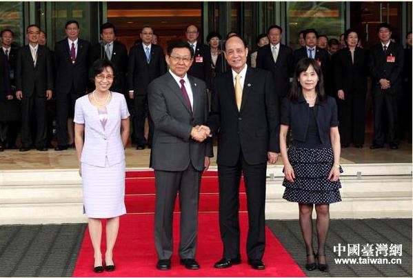 海協(xié)會會長陳德銘(前左二)與;鶗麻L林中森(前右二)。(中國臺灣網(wǎng)圖)