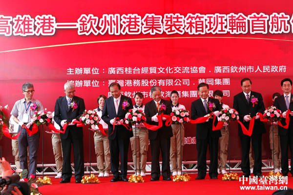2013年4月25日,高雄港-欽州港集裝箱班輪首航儀式在高雄港香蕉碼頭舉行。(圖片來(lái)源:廣西臺(tái)辦)