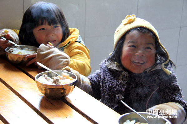 冷水鎮(zhèn)小學(xué)經(jīng)過三年教育實(shí)驗(yàn),學(xué)生精神面貌發(fā)生巨大變化,圖為學(xué)生們在食堂愉快就餐。(中國臺灣網(wǎng) 李徽 攝)