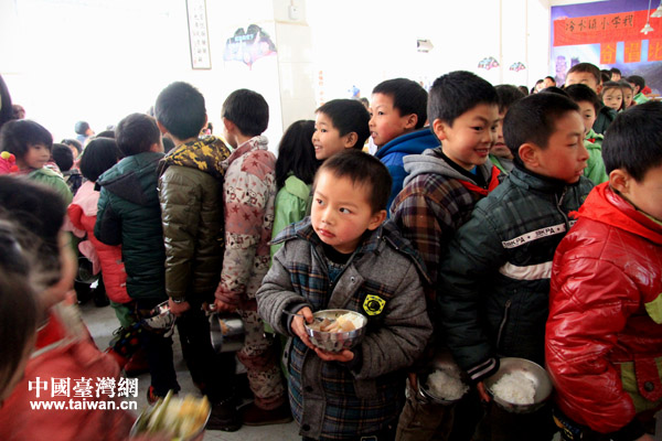 冷水鎮(zhèn)小學(xué)經(jīng)過三年教育實(shí)驗(yàn),學(xué)生精神面貌發(fā)生巨大變化,圖為學(xué)生們在食堂就餐。(中國臺灣網(wǎng) 李徽 攝)