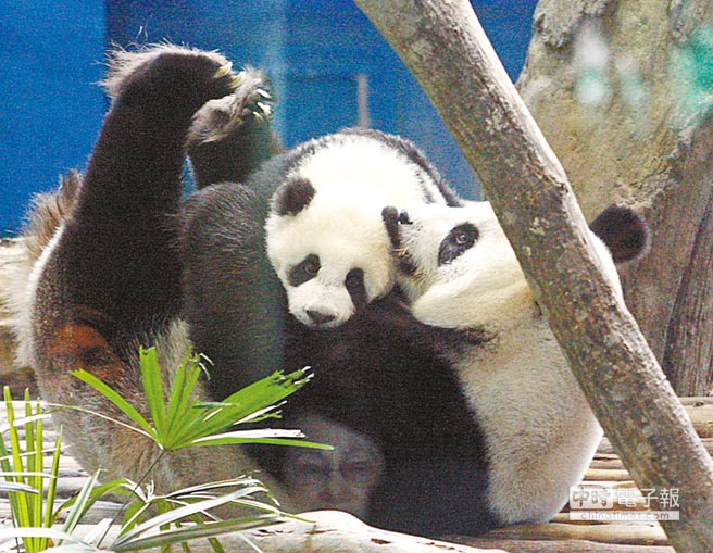 在開館后過沒多久,媽媽圓圓緩緩走向一旁玩耍的圓仔,給它一個大大擁抱