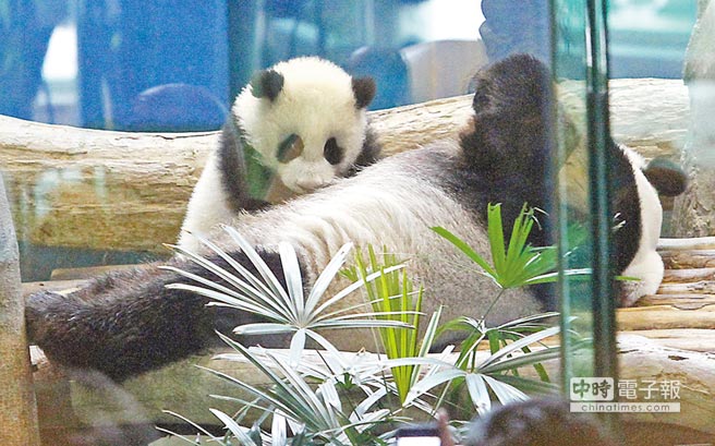 圓仔的處女秀,在展場內(nèi)四處逛逛嗅嗅,展現(xiàn)十足活力,餓了就找圓圓喝奶,玩累了,直接趴在樹上休息,讓大家直呼超可愛