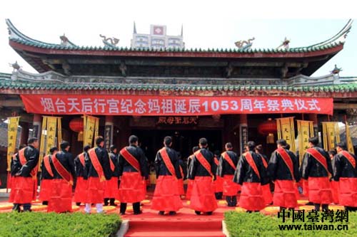5月份,煙臺(tái)市臺(tái)辦與煙臺(tái)市文廣新局聯(lián)合舉辦了煙臺(tái)市2013媽祖文化節(jié)暨媽祖文化研討會(huì),兩岸宮廟代表、新聞?dòng)浾、臺(tái)胞及當(dāng)?shù)厝罕?000余人參加活動(dòng);6月份,長(zhǎng)島縣媽祖文化交流協(xié)會(huì)成立,臺(tái)灣北港朝天宮、臺(tái)灣臺(tái)中沙麓天后宮等臺(tái)灣宮廟代表參加了成立大會(huì);9月份,長(zhǎng)島縣媽祖文化交流協(xié)會(huì)應(yīng)邀赴臺(tái)向臺(tái)灣中學(xué)生傳授古代祭祀禮儀樂(lè)舞,指導(dǎo)臺(tái)灣多家媽祖宮廟舉辦祭祀大典的禮儀程序。通過(guò)媽祖文化交流平臺(tái),增進(jìn)了兩岸同胞的了解和感情,打造了煙臺(tái)北方媽祖文化中心的品牌。