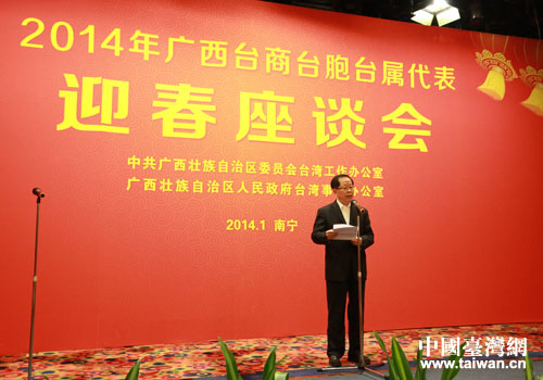 廣西壯族自治區(qū)黨委副書記危朝安在2014年廣西臺商臺胞臺屬代表迎春座談會上致辭。