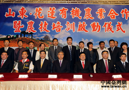 10月31日,郭樹清省長(zhǎng)等與花蓮縣傅崐萁縣長(zhǎng)出席山東-花蓮有機(jī)農(nóng)業(yè)合作暨農(nóng)技培訓(xùn)啟動(dòng)儀式。