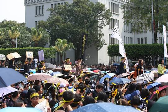 30日下午,臺(tái)灣民眾于臺(tái)北凱達(dá)格蘭大道靜坐(現(xiàn)場(chǎng)圖)