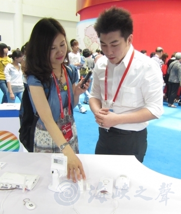在第十六屆海交會8號展館海峽兩岸機(jī)電交流專區(qū)中,“臺灣信息消費(fèi)專區(qū)”這一標(biāo)語格外醒目!拔覀児颈敬螀⒄雇怀觥锫(lián)網(wǎng)’這一主題,所謂物聯(lián)網(wǎng),就是結(jié)合前端的設(shè)備,通過網(wǎng)絡(luò)的方式,讓使用者在遠(yuǎn)端就可以直接搜尋到現(xiàn)場的畫面。”展臺的負(fù)責(zé)人之一王偉告訴記者,這次公司主要帶來了六項(xiàng)服務(wù)內(nèi)容,包含旅游云、安防云、健康云、智慧節(jié)能服務(wù)(iEN:intelligentEnergy Network Service)、電子錢包—多卡通服務(wù)以及智慧家庭(eHome)服務(wù)。其中,旅游云和安防云是該公司在本屆展會上行銷的重點(diǎn)!斑@已不是我們公司第一次參加海交會,但每次都會有一些信息服務(wù)。”王偉說。