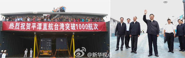 習(xí)近平1日來到平潭海峽高速客運碼頭旅檢大樓,這里可乘船直航臺灣!敖(jīng)常乘船往返?”“船開得怎么樣?”……他和幾位臺灣旅客交談,祝一位在平潭“快樂創(chuàng)業(yè)”的臺胞“事業(yè)發(fā)達”。聽說幾位旅客來自新疆,他說,你們是看完大漠風(fēng)光看海峽風(fēng)光。