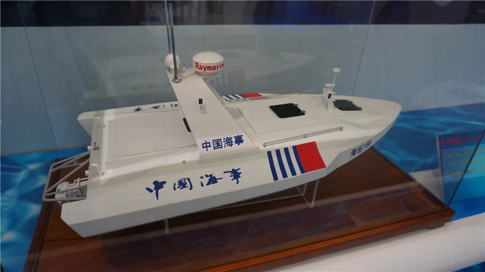 會展上出現(xiàn)的無人巡邏小艇模型(飛揚軍事 同舟滅日 供圖)