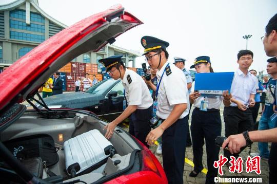 海關(guān)、檢驗(yàn)檢疫、交通等多部門聯(lián)合過檢。(念望舒攝) 念望舒 攝