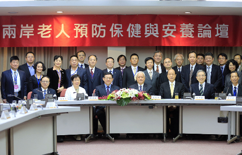 “兩岸老人預(yù)防保健與安養(yǎng)論壇”1日在臺(tái)灣桃園長庚大學(xué)舉行。圖為大陸海協(xié)會(huì)會(huì)長陳德銘與嘉賓合影