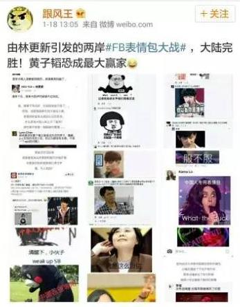 而由于方式是大家通過發(fā)“圖片表情”互嗆,于是這場大戰(zhàn)不僅充滿了詼諧和樂趣,還有了一個很形象的名字:“FB表情包大戰(zhàn)”。