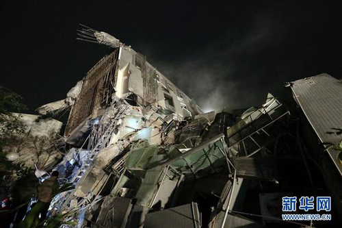 臺(tái)南市永康區(qū)永大路二段樓高17層的維冠大樓倒塌,截至上午7時(shí)10分,搜救人員救出127人。永康區(qū)永大路還有水管破裂、瓦斯外泄的情況。大智里菜市場(chǎng)70戶受困,疏散56人至大智里活動(dòng)中心避難、御寒。