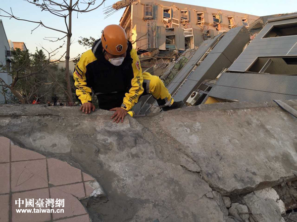 中國臺灣網(wǎng)2月9日訊。ㄓ浾 陳佳慧)“兩岸人民一家親,我們來到臺灣幫助救援是理所當然的,希望災區(qū)民眾能早日度過難關(guān)。”9日中午,大陸公羊救援隊隊員廖偉和她的5名隊友,已經(jīng)連續(xù)在臺南市地震災區(qū)奮戰(zhàn)了三天。