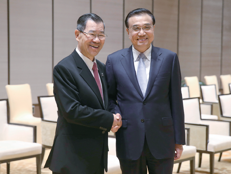 24日,國務(wù)院總理李克強(qiáng)在海南博鰲會見兩岸共同市場基金會榮譽(yù)董事長蕭萬長一行。中新社發(fā)