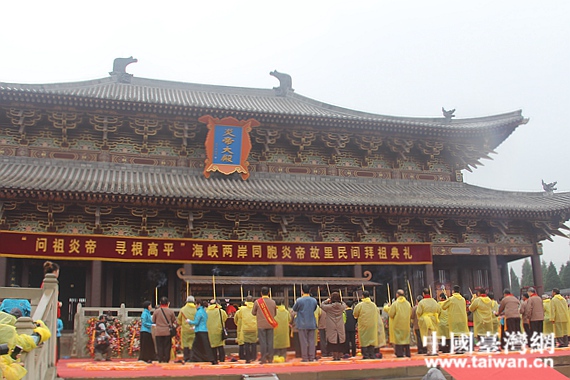 臺灣32座宮廟代表向炎帝大殿敬獻(xiàn)了牌匾。(中國臺灣網(wǎng) 李學(xué)磊 攝)