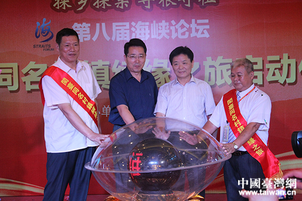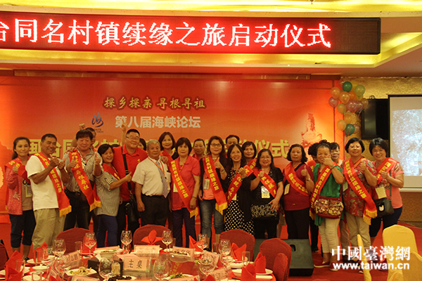 中國(guó)臺(tái)灣網(wǎng)6月11日廈門訊 (記者 蕪?fù)?在當(dāng)今世界的人類歷史上有一個(gè)奇特的現(xiàn)象:有一個(gè)族群,幾百年前為生活所迫,歷經(jīng)千難萬(wàn)險(xiǎn)跨海去對(duì)岸討生活,但仍然日夜思念祖籍地,于是他們就把自已新的居住地命名為故鄉(xiāng)的村鎮(zhèn)名,以示永不忘本,并寄托濃濃的鄉(xiāng)愁;從此,在海峽兩岸出現(xiàn)了600多個(gè)相隔大海、但完全一樣的同名村鎮(zhèn)。6月10日晚,“第八屆海峽論壇 閩臺(tái)同名村鎮(zhèn)續(xù)緣之旅”啟動(dòng)儀式在廈門舉行。本屆閩臺(tái)同名村鎮(zhèn)續(xù)緣之旅,邀請(qǐng)了臺(tái)灣同名村鎮(zhèn)鄉(xiāng)親380人來(lái)福建探親謁祖、修撰族譜、考察交流、敘緣聯(lián)誼。閩臺(tái)兩地的對(duì)接村鎮(zhèn)也由去年的28對(duì),擴(kuò)大至76對(duì)。閩臺(tái)同名鄉(xiāng)鎮(zhèn)鄉(xiāng)親和有關(guān)人士400多人出席了啟動(dòng)儀式。