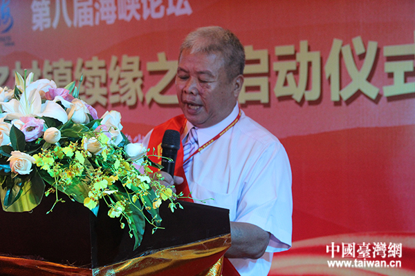 “第八屆海峽論壇 閩臺(tái)同名村鎮(zhèn)續(xù)緣之旅”啟動(dòng)儀式上,來(lái)自泉州市泉州港前黃鎮(zhèn)鳳山村連氏家族的代表連育華發(fā)言。(中國(guó)臺(tái)灣網(wǎng) 蕪?fù)?攝)