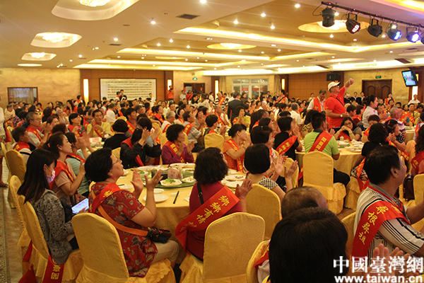 6月10日晚,“第八屆海峽論壇 閩臺(tái)同名村鎮(zhèn)續(xù)緣之旅”啟動(dòng)儀式在廈門舉行,圖為啟動(dòng)儀式現(xiàn)場(chǎng)的臺(tái)灣鄉(xiāng)親們。(中國(guó)臺(tái)灣網(wǎng) 蕪?fù)?攝)