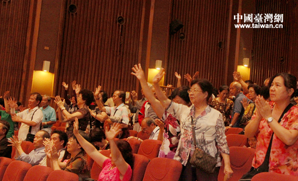 現(xiàn)場觀眾紛紛起立,對京臺大學(xué)生的合璧演出報以熱烈持久的掌聲。(中國臺灣網(wǎng) 王思羽 攝)