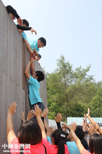 中國(guó)臺(tái)灣網(wǎng)7月7日北京訊。ㄓ浾 李杰)7月6日,參加第十七屆京臺(tái)青年交流周的兩岸青年大學(xué)生120人,來(lái)到了位于北京密云的北京國(guó)際青年訓(xùn)練營(yíng),進(jìn)行了拓展訓(xùn)練,兩岸青年學(xué)生通過(guò)共同努力完成訓(xùn)練項(xiàng)目,增進(jìn)了交流和了解,并激發(fā)出創(chuàng)新意識(shí)和集體觀念。