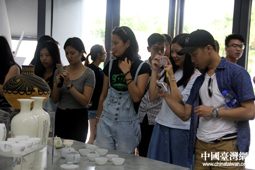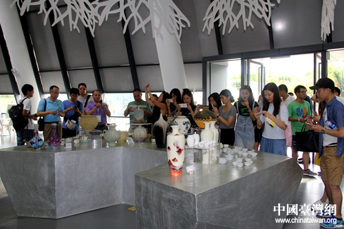 兩岸大學(xué)生參觀位于旺山村內(nèi)的美食文化創(chuàng)意展覽。(中國臺灣網(wǎng)記者 李杰 攝)
