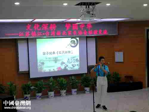 鎮(zhèn)江中華路小學生在交流會上展示笛子演奏。(鎮(zhèn)江市臺辦 章邦勇 攝)