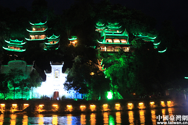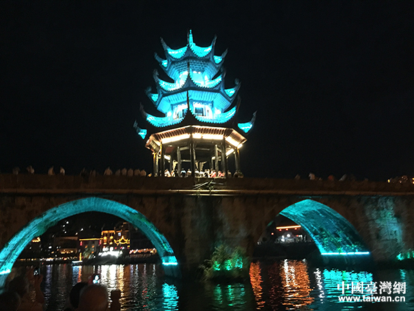 中國(guó)臺(tái)灣網(wǎng)7月17日貴州鎮(zhèn)遠(yuǎn)訊 (記者 蕪?fù)?月15日,“情系多彩貴州——兩岸文化聯(lián)誼行”活動(dòng)進(jìn)入第四天,兩岸文化界人士來(lái)到貴州黔東南州鎮(zhèn)遠(yuǎn)縣。鎮(zhèn)遠(yuǎn)是一座古城,古城里徽派古建筑很多,一條舞陽(yáng)河從古城中穿過(guò)。臺(tái)灣嘉賓們走過(guò)古巷,登上青龍洞,在夜幕降臨時(shí)又泛舟河上,欣賞兩岸燈光美景。