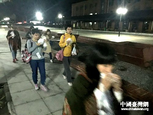 女記者們顧不上淑女形象,邊走邊吃起來(lái)。在頭天夜里記者們?nèi)ヅ牟杩ㄐ强諘r(shí),有人夜里2點(diǎn)在微信群里發(fā)信息“餓了,誰(shuí)有方便面!”記者們是真餓了。(中國(guó)臺(tái)灣網(wǎng) 蕪?fù)?攝)