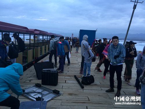 中國(guó)臺(tái)灣網(wǎng)8月12日德令哈市訊 (記者 蕪?fù)? 8月11日晚,“一江清水向東流 2016全國(guó)重點(diǎn)網(wǎng)絡(luò)媒體看青!贝笮筒稍L活動(dòng)的記者們,來(lái)到有“天空之鏡”美稱(chēng)的茶卡鹽湖。