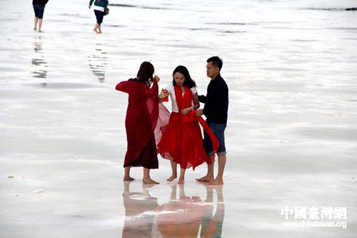 浩瀚的鹽湖。但因?yàn)橛酗L(fēng)而沒(méi)拍出理想的效果。大家不氣餒,爭(zhēng)取再上岸拍些美圖。(中國(guó)臺(tái)灣網(wǎng) 蕪?fù)?攝)