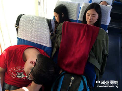 早晨的拍攝任務(wù)結(jié)束了,記者們匆匆坐上車(chē)奔赴下一個(gè)地點(diǎn)。路上還有約310公里,要走4個(gè)多小時(shí)的行程。記者們終于抗不住,在車(chē)上睡著了。(中國(guó)臺(tái)灣網(wǎng) 蕪?fù)?攝)