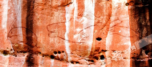 江津四面山景區(qū)灰千巖崖壁上刻畫(huà)的動(dòng)物圖案 四面山景區(qū)供圖