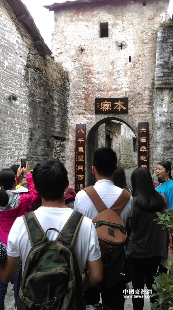 云峰屯堡導游向記者團介紹本寨的歷史及文化(中國臺灣網(wǎng) 王文英攝)