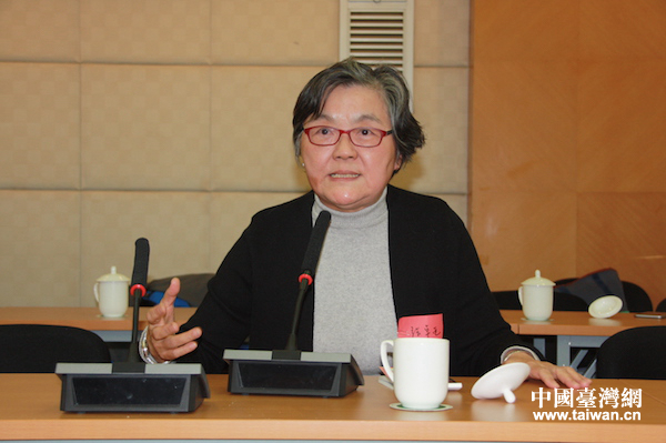 北京中國大學(xué)校友會歷史顧問劉蘇在座談會上發(fā)言(中國臺灣網(wǎng)齊昕 攝)