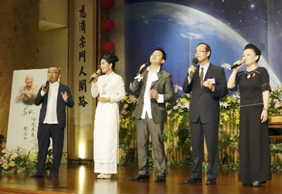 莊奴之子黃浩然(左一)、學生高原(左三)等人以歌聲懷念莊奴。(本報記者 張 盼攝)