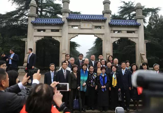 洪秀柱一行于30日晚間抵達(dá)南京。10月31日上午,綿綿秋雨中,洪秀柱率領(lǐng)中國(guó)國(guó)民黨大陸訪問(wèn)團(tuán)抵達(dá)南京中山陵拜謁,向?qū)O中山先生致敬。