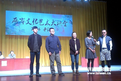 中國臺灣網(wǎng)11月9日晉江訊 11月9日上午,“兩岸大學(xué)生優(yōu)秀美術(shù)作品展暨藝術(shù)大講堂”首展在晉江博物館開展,展覽以“原創(chuàng)最美”為主題,從清華大學(xué)美術(shù)學(xué)院、集美大學(xué)美術(shù)學(xué)院、臺灣師范大學(xué)美術(shù)學(xué)系、臺灣藝術(shù)大學(xué)等兩岸著名藝術(shù)院校選送的學(xué)生美術(shù)作品中,精選出60余幅優(yōu)秀作品展出。“藝術(shù)講堂之晉江講堂”同日下午在晉江戲劇中心開講,來自兩岸院校的教授及學(xué)生代表以及活動主協(xié)辦方相關(guān)人員百余人與會。此次講堂導(dǎo)師由福建省美術(shù)家協(xié)會秘書長趙勝利、林派傳人草山大師、臺灣師范大學(xué)美術(shù)學(xué)院黃進龍教授擔(dān)當(dāng)。