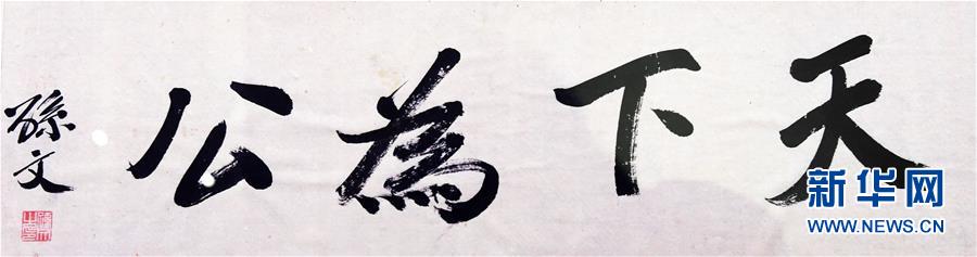 臺灣島內(nèi)珍藏史料中的孫中山這是中國國民黨黨史館的館藏文物《天下為公》真跡(11月9日攝)。今年11月12日是孫中山先生誕辰150周年紀念日。在祖國寶島臺灣珍藏著許多彌足珍貴的孫中山文物,而保存最多、最全、最有系統(tǒng)的無疑是中國國民黨黨史館。新華社記者朱祥攝