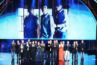 圖為《牯嶺街少年殺人事件》劇組在頒獎(jiǎng)禮開(kāi)場(chǎng)現(xiàn)身,致敬大師與經(jīng)典。林伯東攝