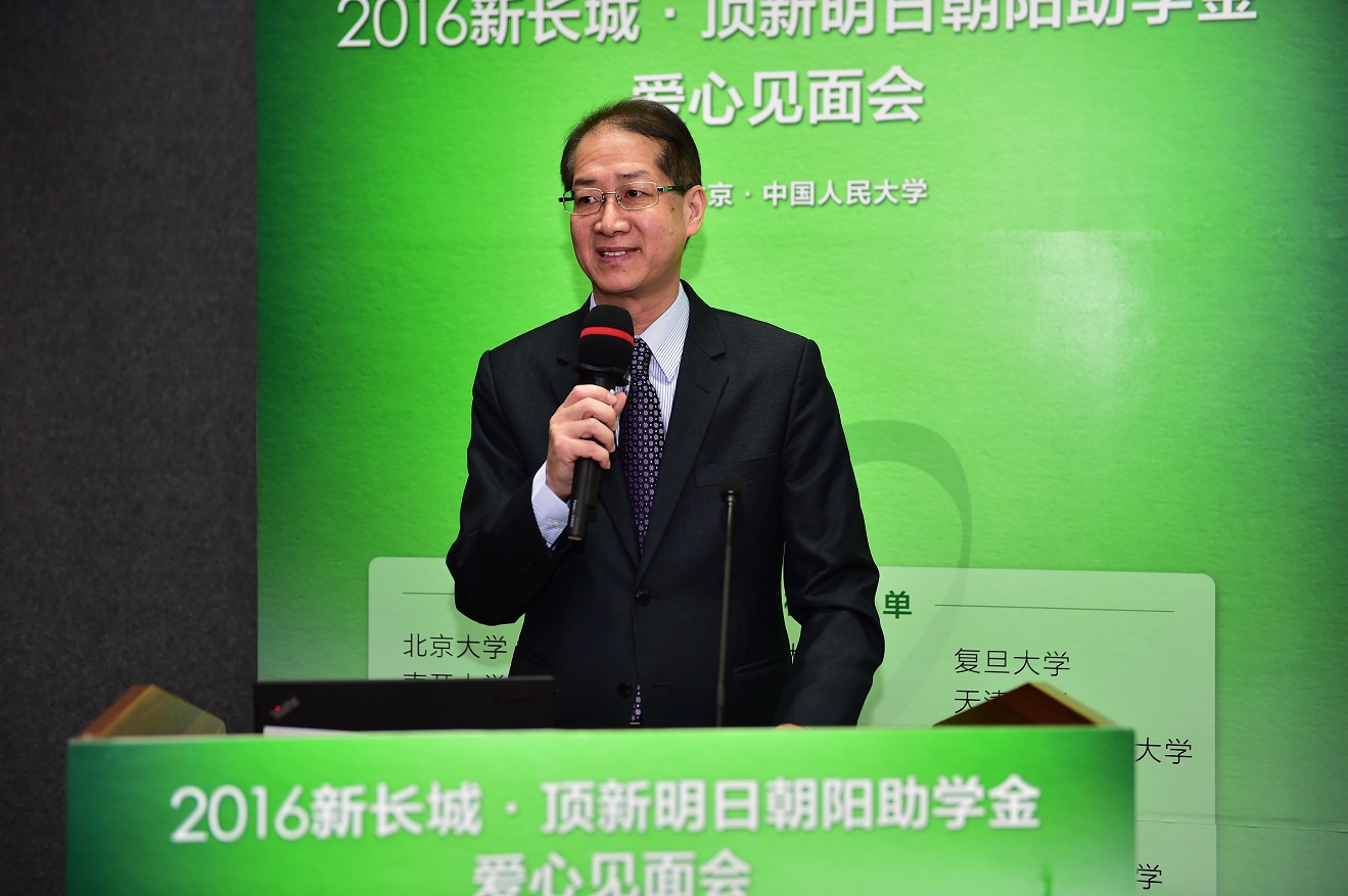 受益學生代表張瑞發(fā)言說,他在新長城·頂新明日朝陽助學基金的鼓勵下,在學習與生活中堅持奮發(fā)向上,勇于面對挫折與挑戰(zhàn)。更讓自己懂得了感恩與回饋社會,在大學期間,積極服務社會,參與公益活動。