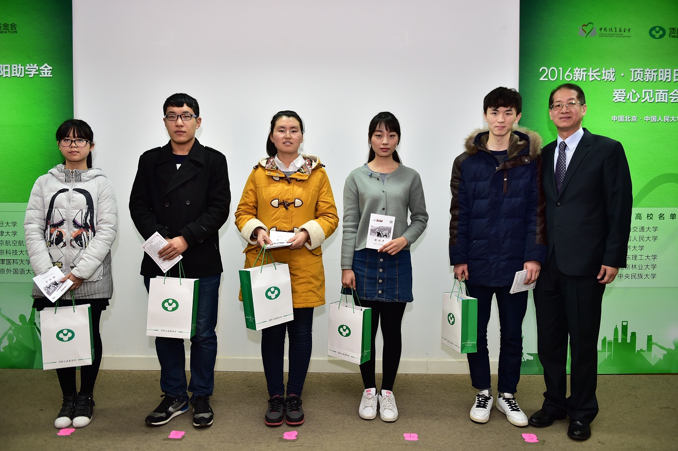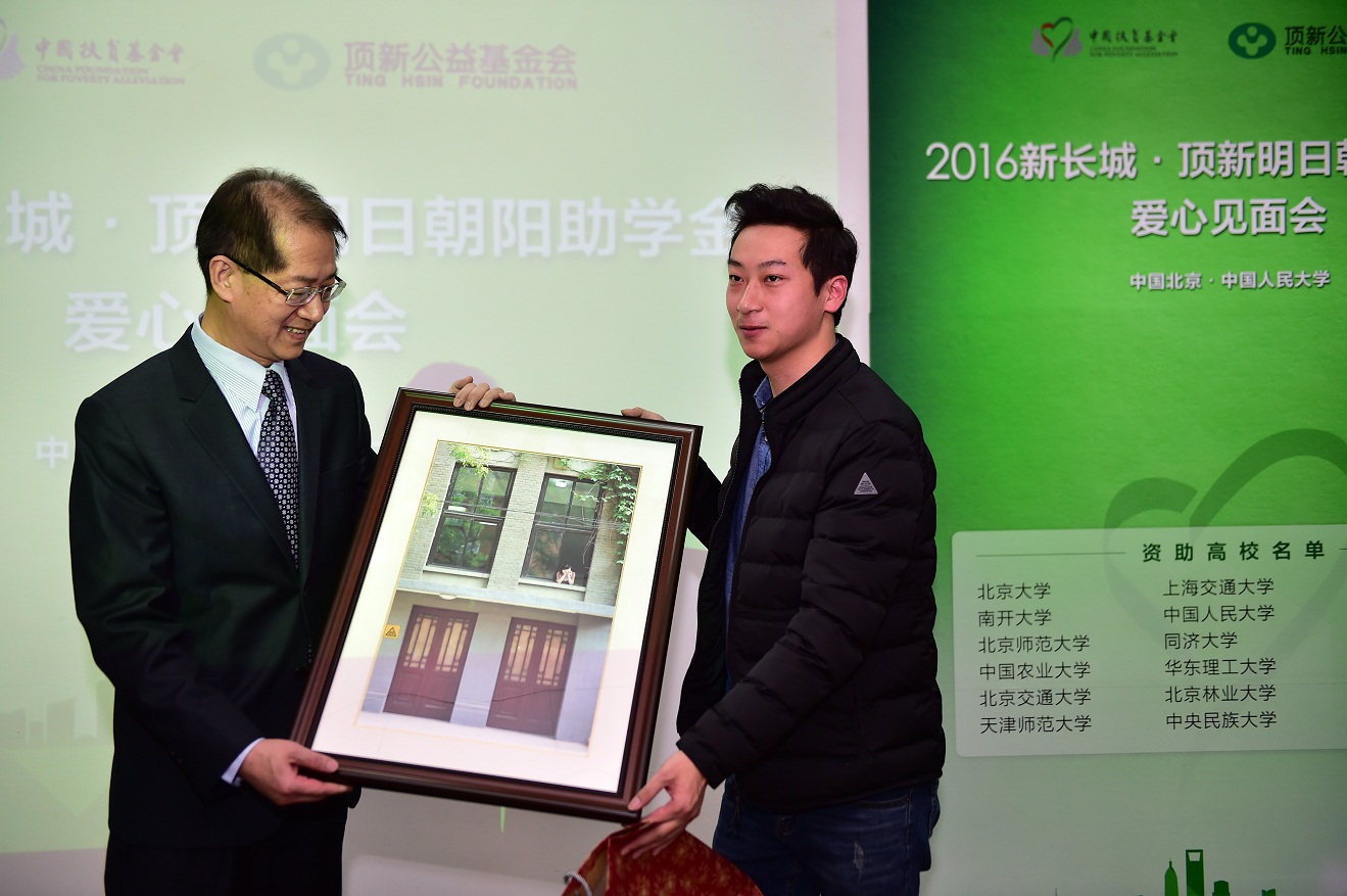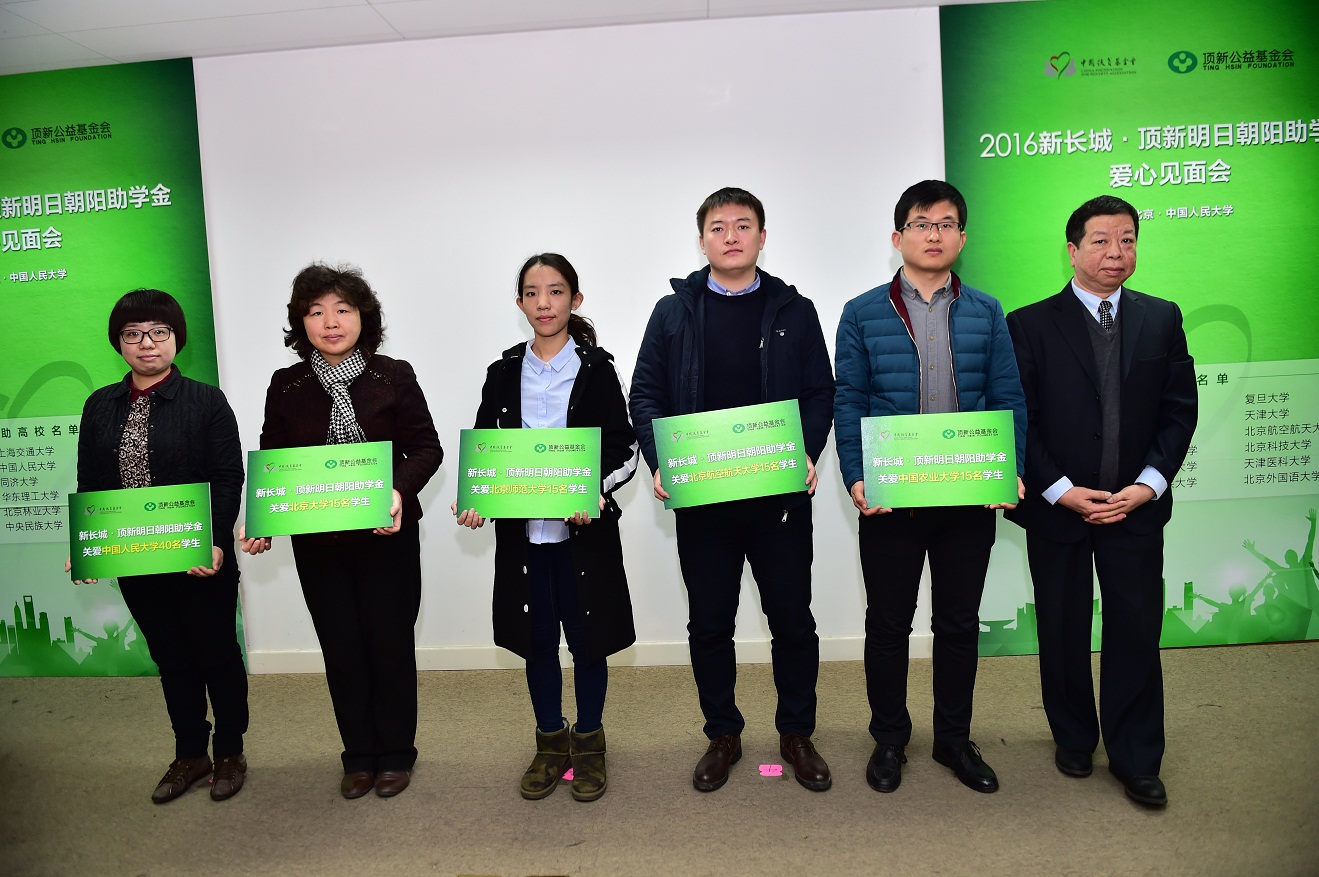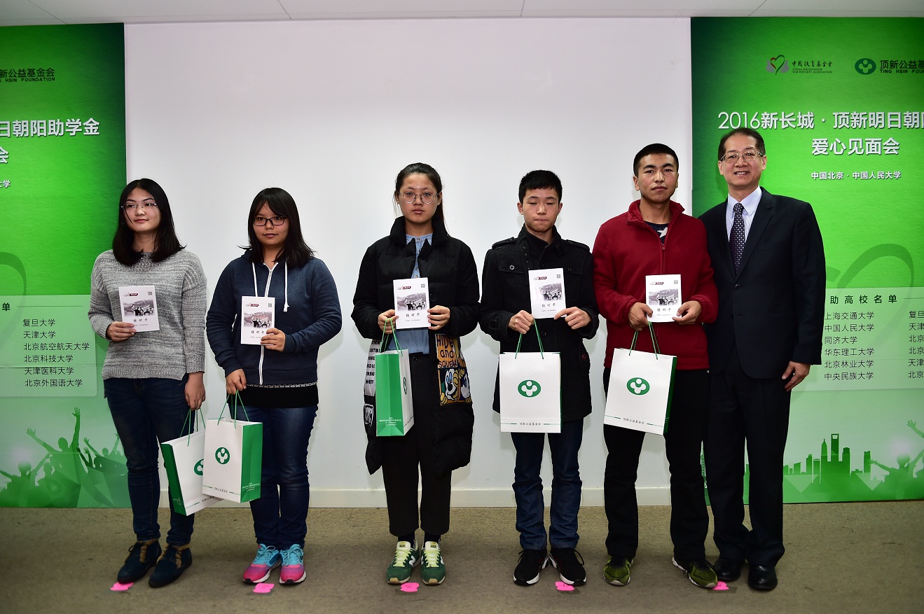 中國臺灣網12月2日訊 據中國扶貧基金會網站報道,12月1日,2016年新長城·頂新明日朝陽助學金愛心見面會在中國人民大學舉行。頂新公益基金會理事長滕鴻年、中國扶貧基金會副會長江紹高、中國人民大學副校長吳曉球、頂新公益基金會副秘書長王興華出席活動。中國人民大學、北京大學、北京師范大學、北京航空航天大學、中國農業(yè)大學、北京科技大學、北京交通大學、北京林業(yè)大學、中央民族大學、北京外國語大學10所高校老師和受益學生代表參加此次愛心見面。見面會的尾聲,全場受益的學生合唱一曲《感恩的心》,現場溫馨又感人。